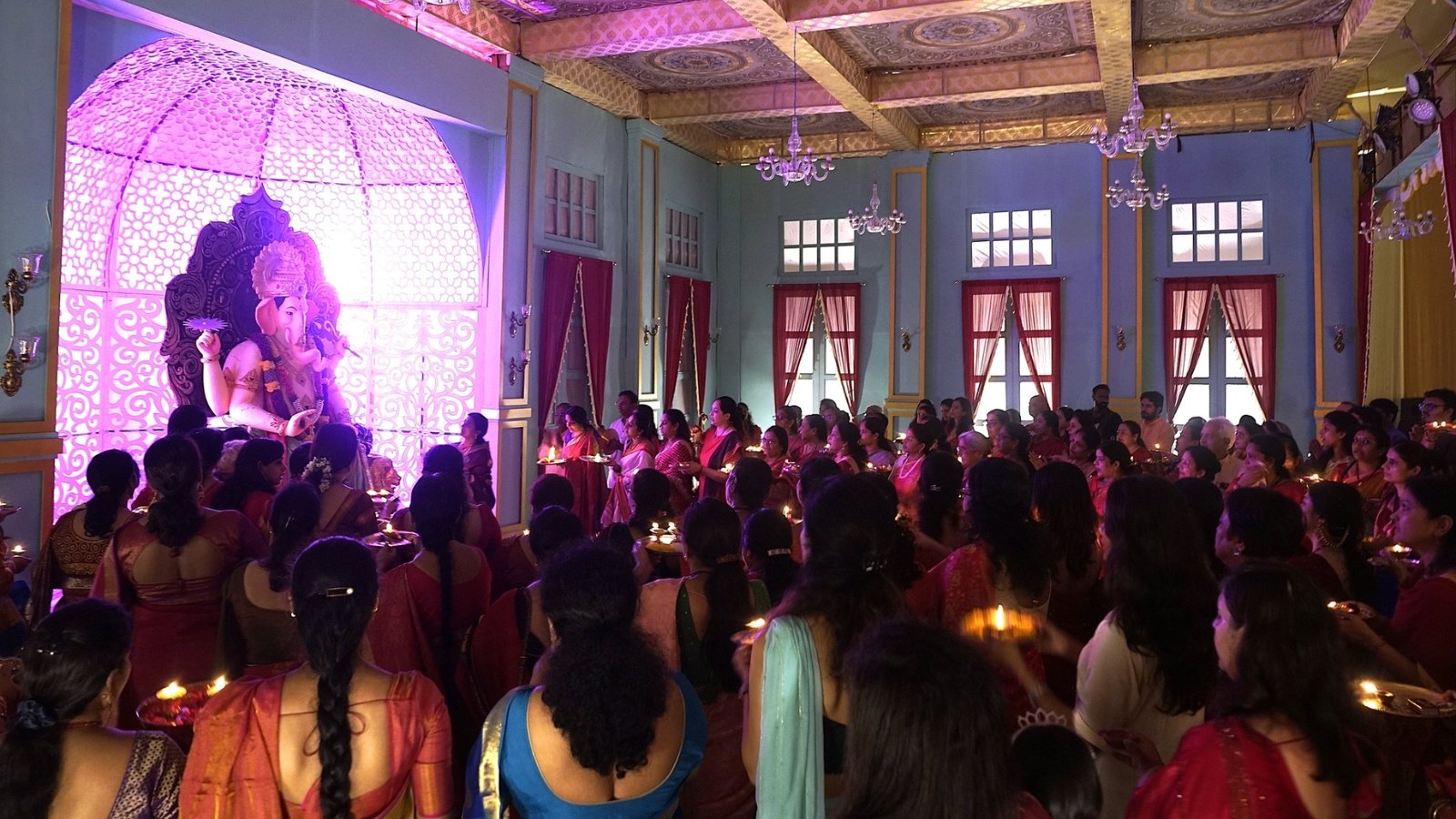 Ganesha Pandal Aparna Sarovar, Hyderabad, Telangana, IndiaWitness the magic of Taal - An Experience, a dedicated group of 50 talented women and girls who light up Sarovar’s celebrations with their mesmerizing cultural dance performances. Their show-stopping finale during the Aarti is the pinnacle of the Ganesh festival, leaving audiences in awe. Join us as Taal brings tradition, passion, and artistry to life on stage in a performance you won’t want to miss.